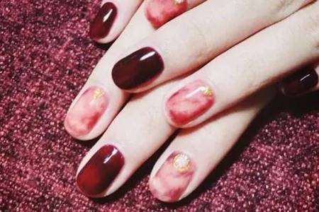 酒红色系美甲