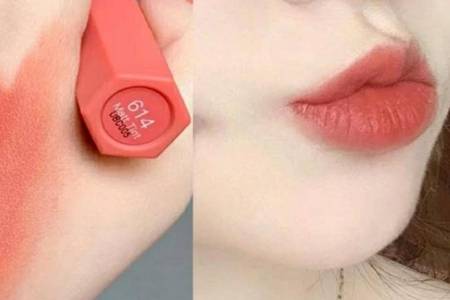 VNK方糖口红05,属于铁锈红,质地顺滑,不挑肤色,有很好的滋润保湿效果,也有很好的附着力。涂抹后,会有种奶油既视感,轻薄自然,是2020年抖音最流行的口红之一,不管是外观设计,还是膏体质量,都可以跟大牌相媲美。