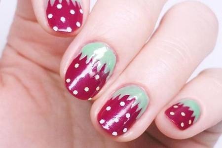 甜美草莓美甲教程